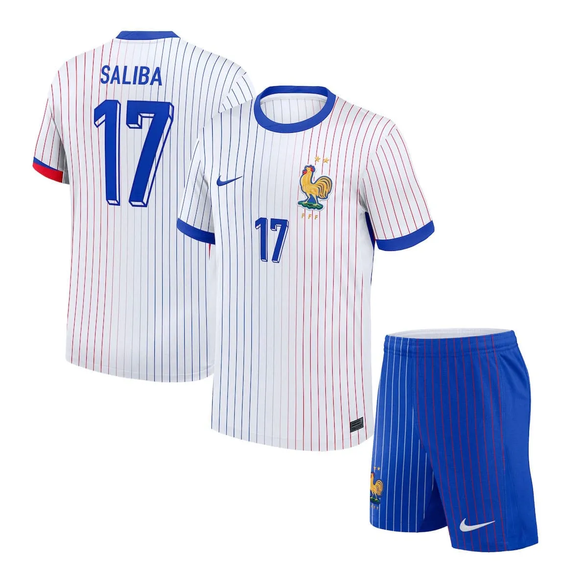 PACK MAILLOT ET SHORT FRANCE FLOCAGE SALIBA VERSION EXTERIEUR MODÈLE ENFANT 2024/2025