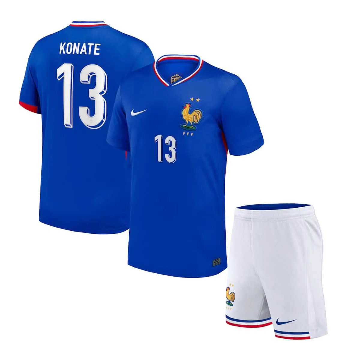 PACK MAILLOT ET SHORT FRANCE FLOCAGE KONATE VERSION DOMICILE MODÈLE ENFANT 2024/2025