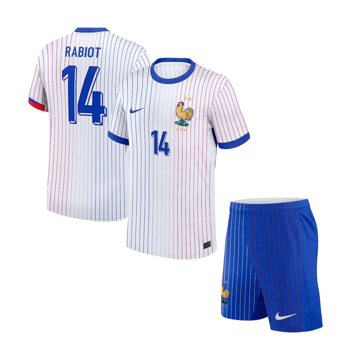 PACK MAILLOT ET SHORT FRANCE FLOCAGE RABIOT VERSION EXTERIEUR MODÈLE ENFANT 2024/2025