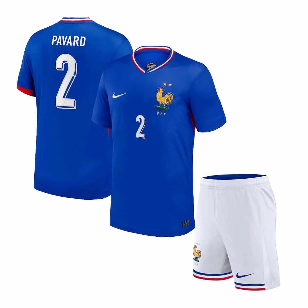 PACK MAILLOT ET SHORT FRANCE FLOCAGE PAVARD VERSION DOMICILE MODÈLE ENFANT 2024/2025