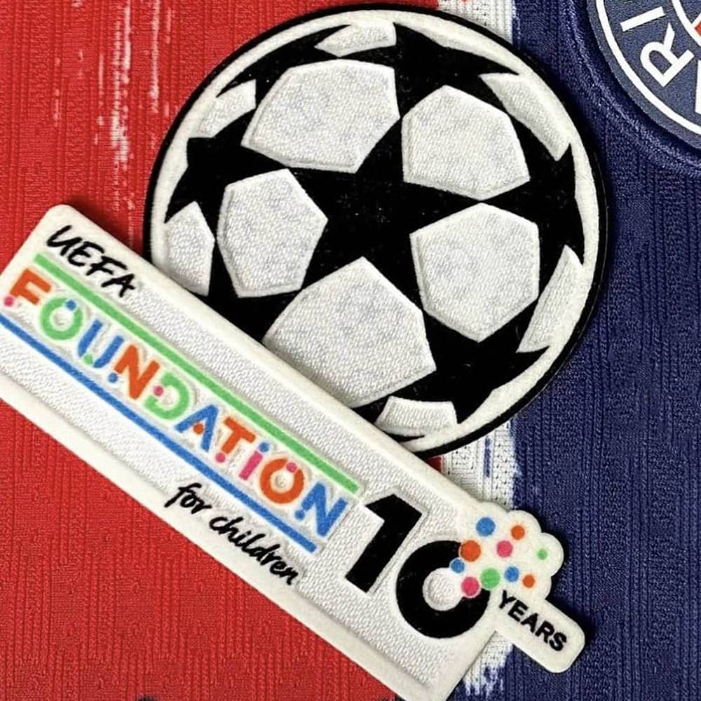 REPLIQUE OFFICIELLE DU MAILLOT DE LA FINALE AVEC FLOCAGE DE l’EVENEMENT SUR LE TORSE ET LES 2 PATCHS CHAMPIONS LEAGUE + UEFA FOUNDATION 10 YEARS SUR LA MANCHE